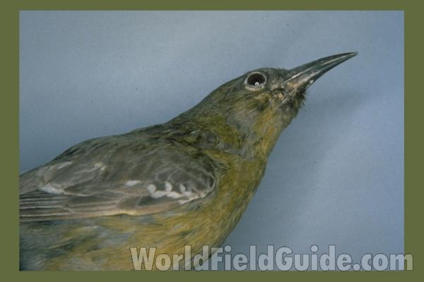 Scott's Oriole (Icterus parisorum) breeds in the dry country from southeast California to Texas (west of the Pecos) and as far north as Nevada and Utah. The black back and head help identify this Oriole. It measures from seven to eight inches.Blackbirds (Family Icteridae) are found worldwide. The Red Winged Blackbird, Yellow Headed Blackbird, Bobolink, orioles, grackles, and meadowlarks are well-known members of this family in the United States. There are about 97 species worldwide in this family.