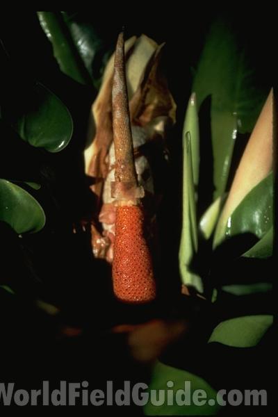 Arums (Family Araceae) are found worldwide primarily in the tropics. This family has over 3,000 species organized into over 100 genera. The family is not very important from an economic viewpoint. While the roots of Colocasia (taro) and Alocasia are eaten, and the fruits of Monstera are also eaten, many of the genera are used as ornamentals, such as Dieffenbachia, Philodendron, and Anthurium. There are 47 species in 25 different genera growing in greater North America.